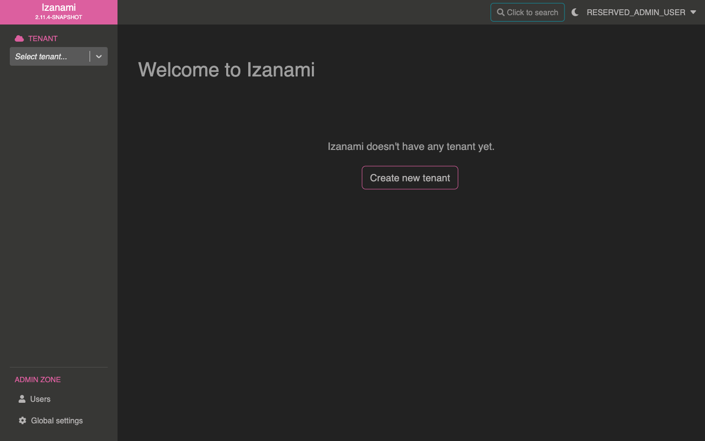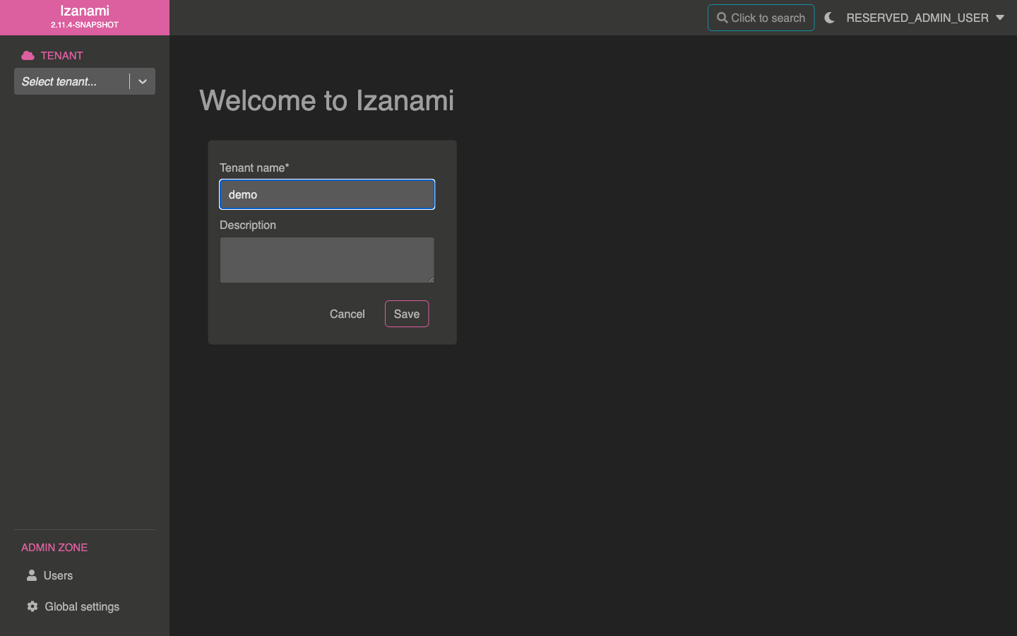 When login in for the first time, Izanami will ask you to create a tenant.