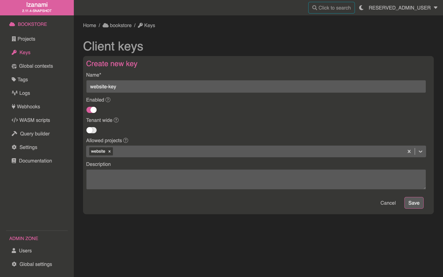 Izanami-Client-Id: client id of your keyIzanami-Client-Secret: client secret of your key
