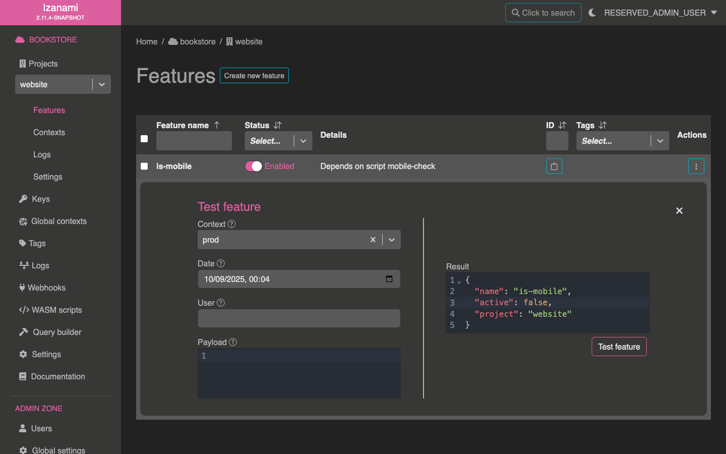executionContextfields provided by Izanami, that indicates the context that was used for querying Izanami. - It checks if