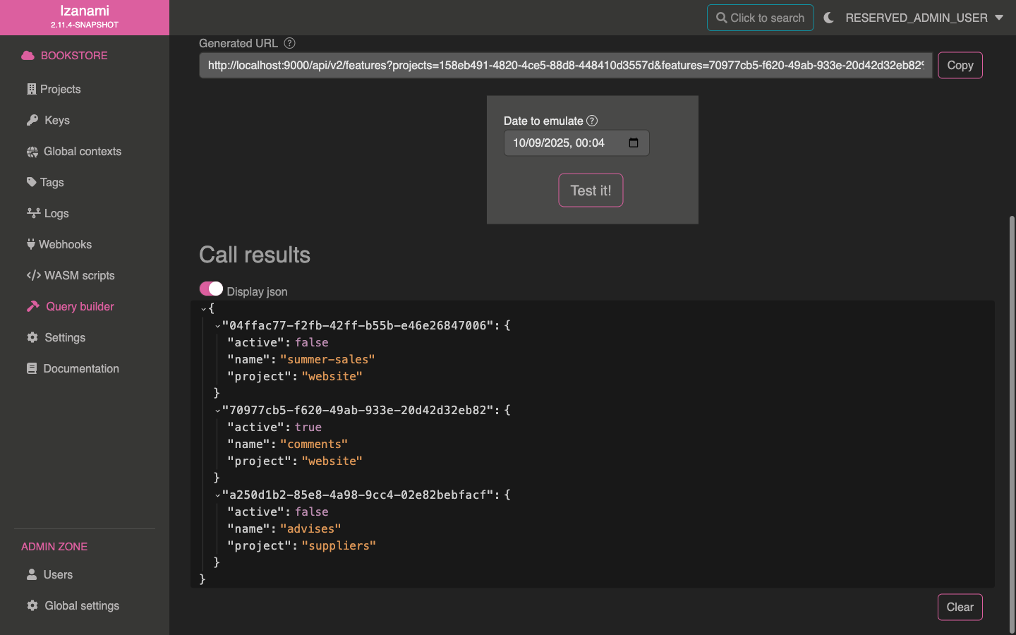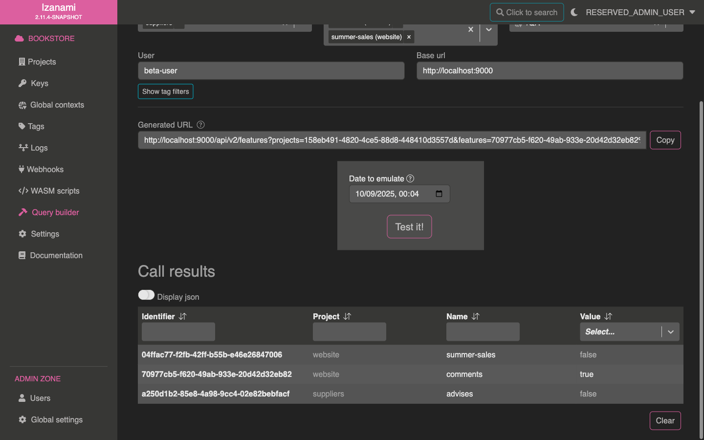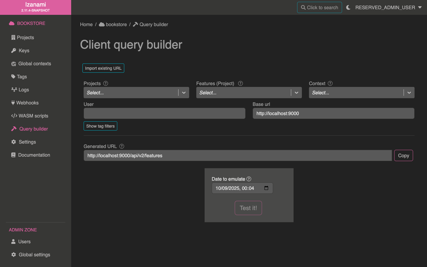 To help you to build these urls, Izanami provides a query builder.
