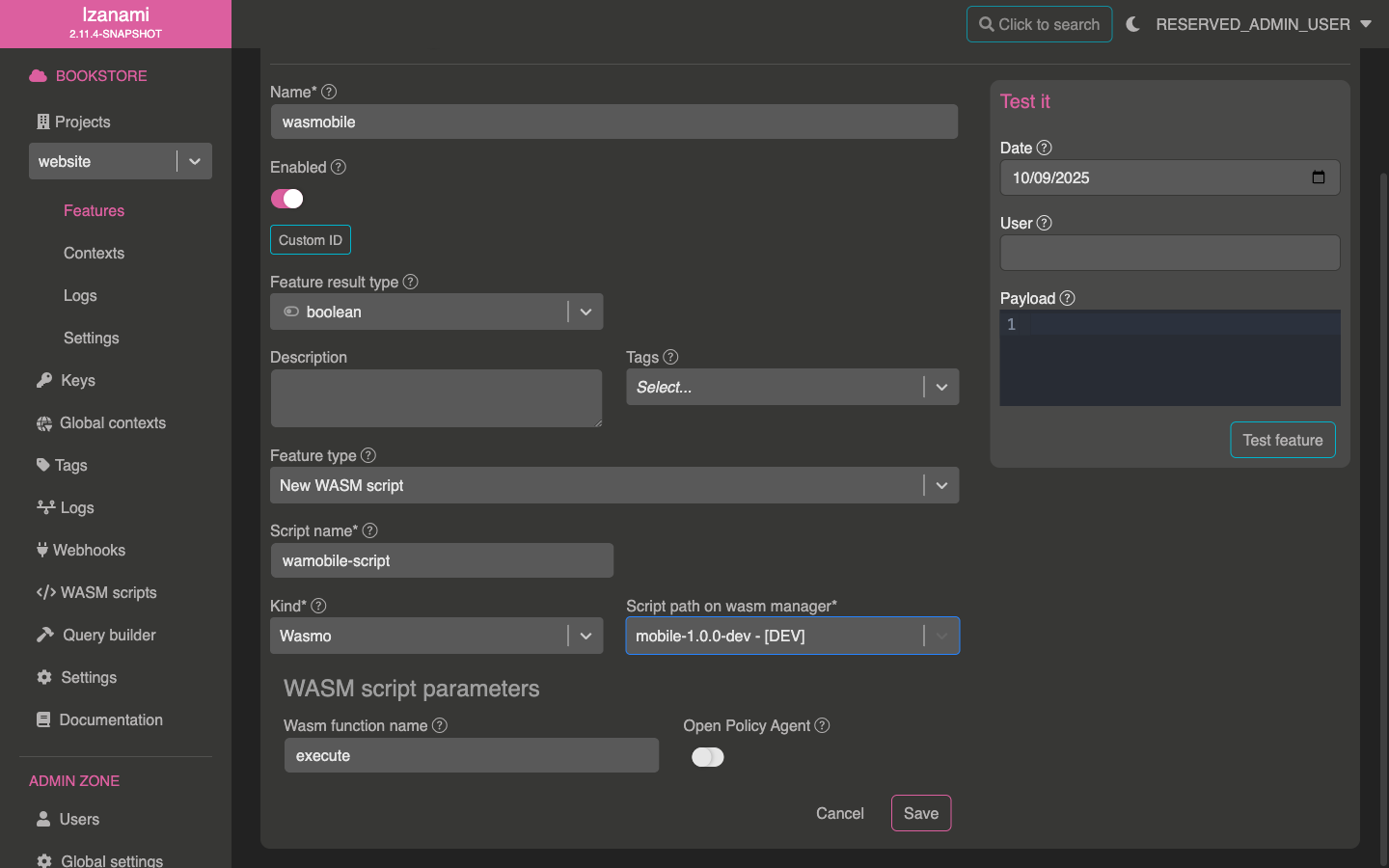 Now let's get back to Izanami and create a new WASM feature. This time we'll choose to create a WASMO feature.