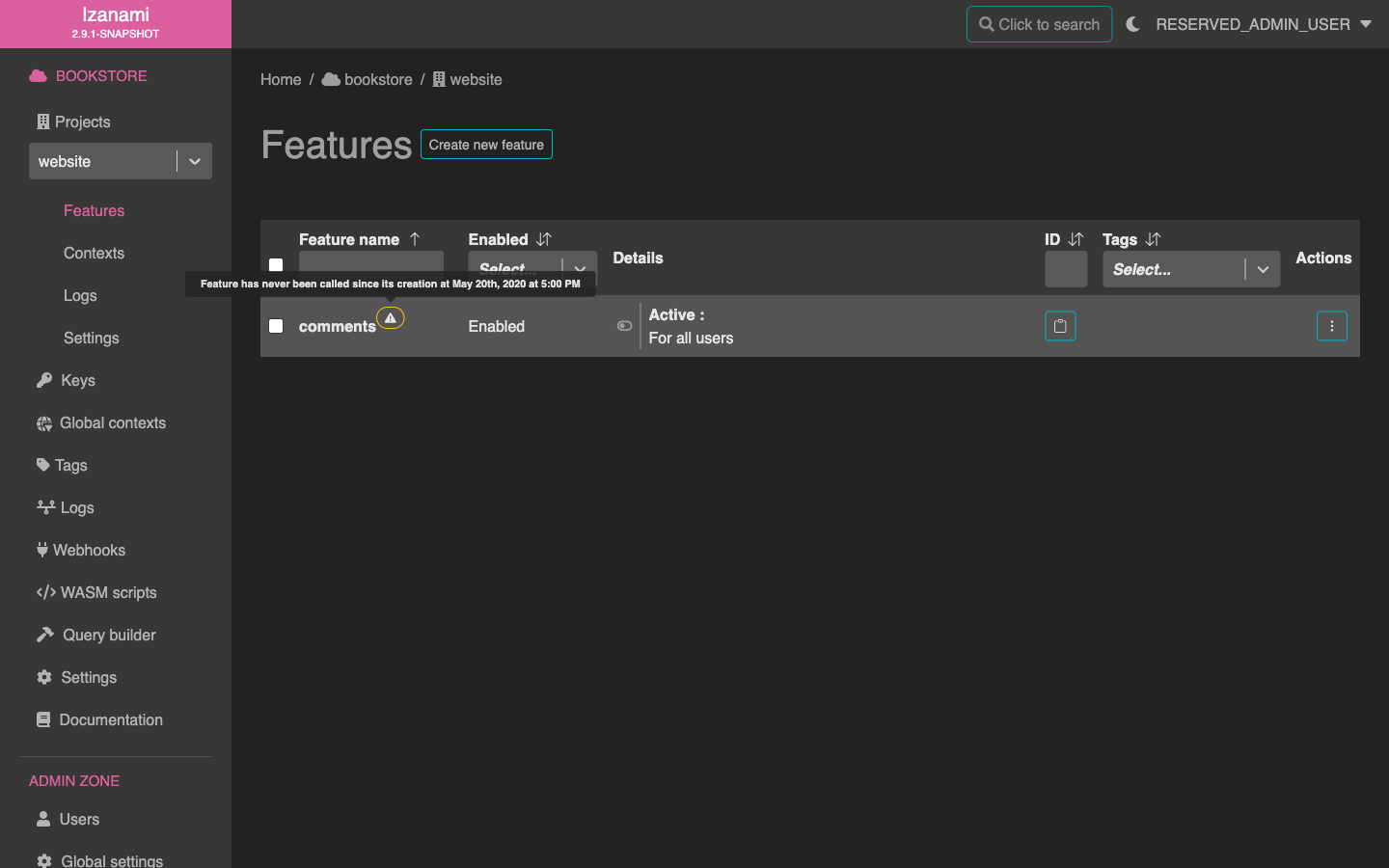 Identifying flags that are not used or useful is, however, a challenge. To ease this task, Izanami offers some hints on features that might be "stale".