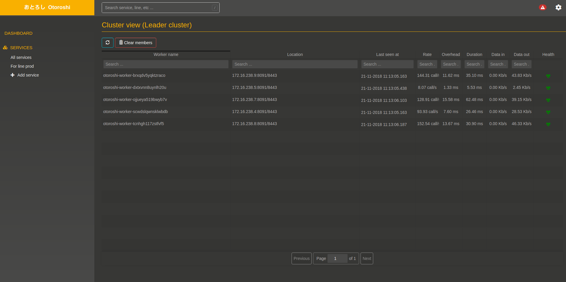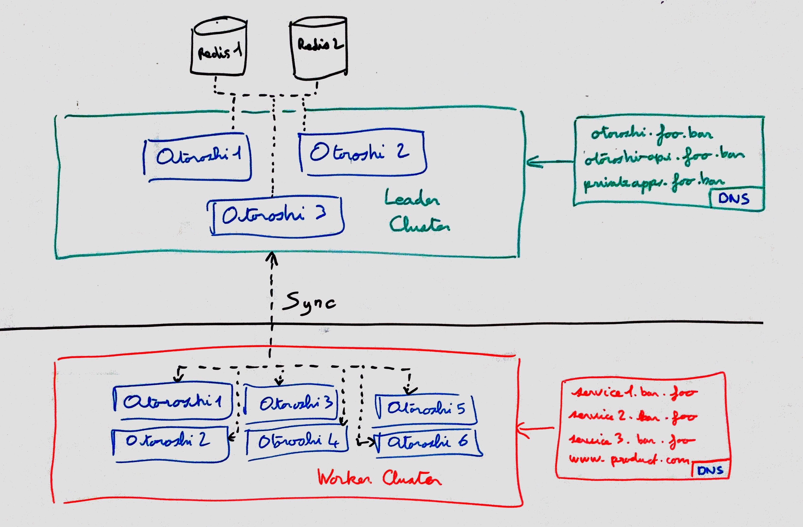 Otoroshi can work as a cluster by default as you can spin many Otoroshi servers using the same datastore or datastore cluster. In that case any instance is capable of serving services, Otoroshi admin UI, Otoroshi admin API, etc.