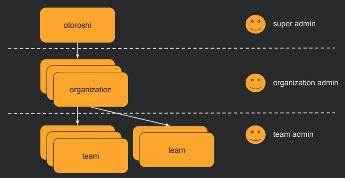 - Otoroshi Admins - Admin users have rights scoped to specific teams