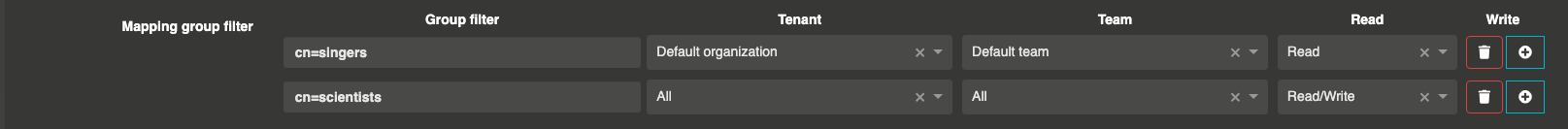 Then, replace the values of the Mapping group filter field to match LDAP groups with Otoroshi rights.