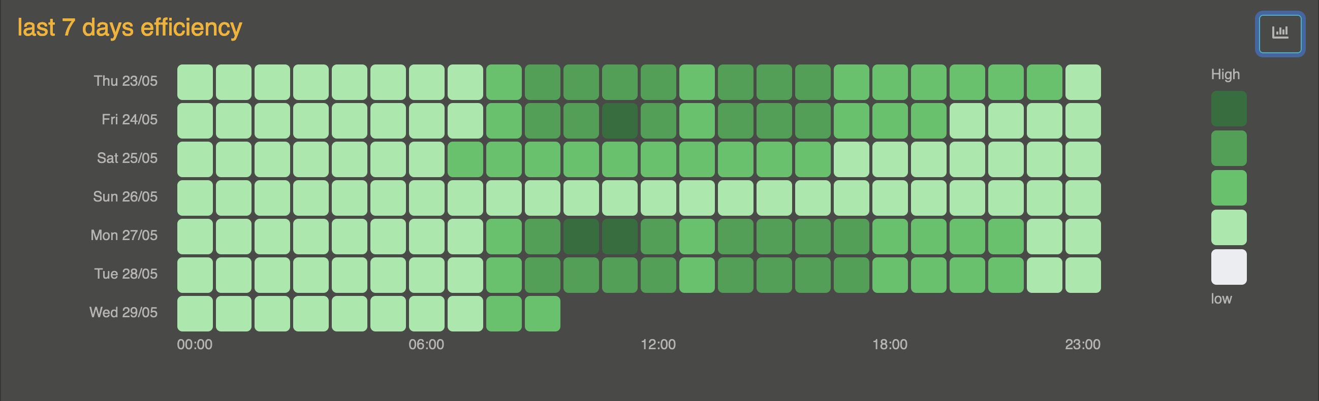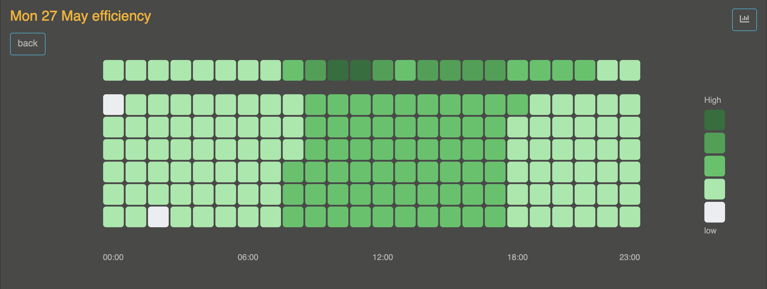 By clicking on the day in the legend, data is retrieved for the selected day with an interval of 10 minutes. The scale of the 7 last days is kept, in the top, the selected days is displayed.