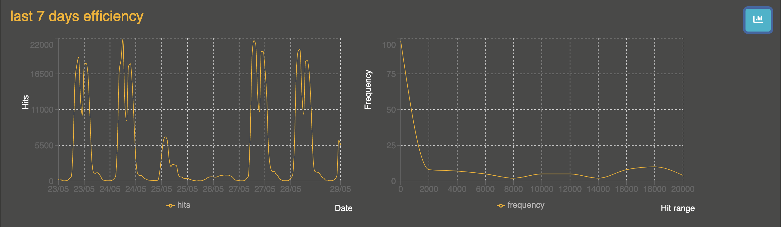 By clicking on the graph button in the upper right corner, an alternative view allows you to visualize the data using 2 graphs including a frequency graph.