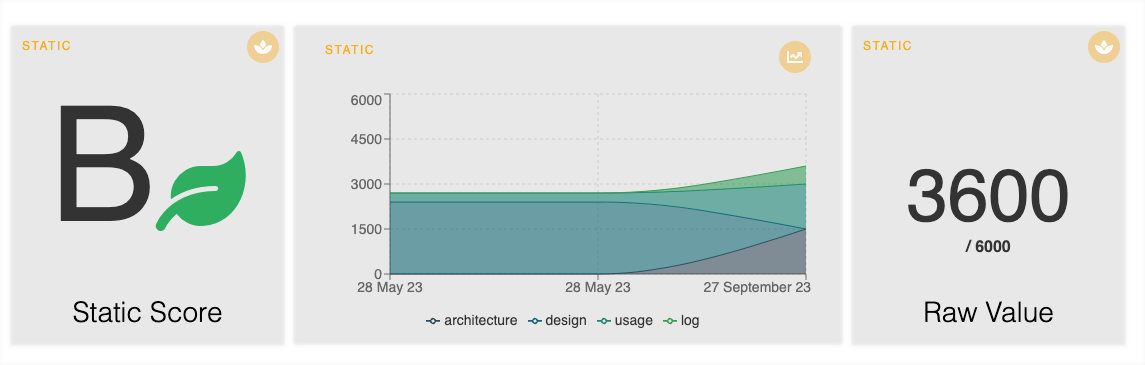 The Green Score provide aggregated, quantitative data about the performance and behavior of an API over time. It is an aggregation of static and dynamic values that are coming from the usage of routes in Otoroshi. The main objective is to advise users on the consumption of their APIs and services.