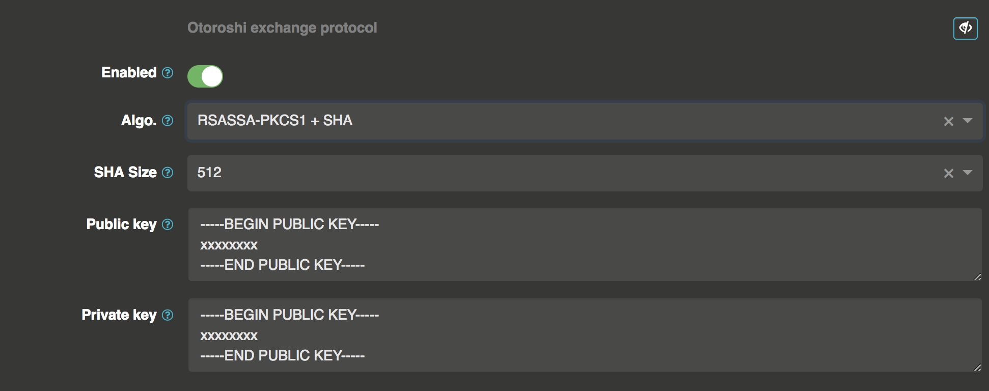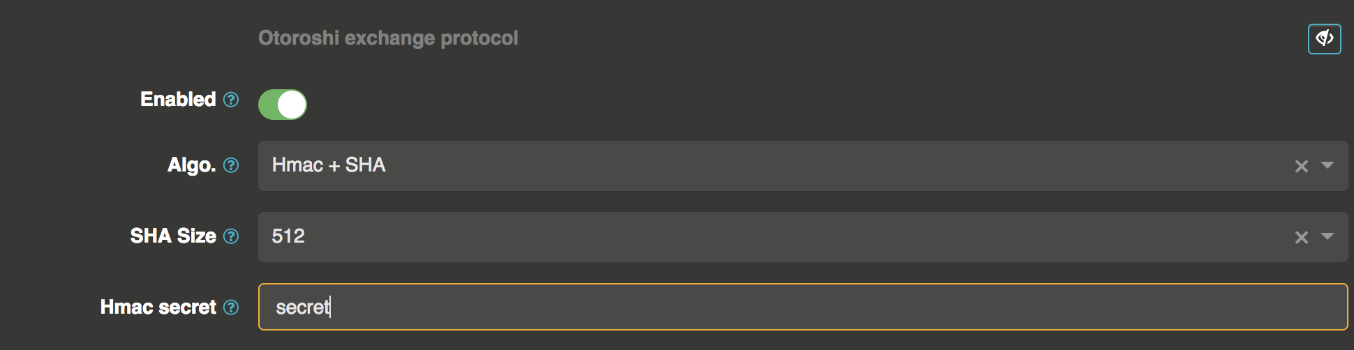 The exchange protocol secure the communication with an app. When it's enabled, Otoroshi will send for each request a value in pre-selected token header, and will check the same header in the return request. On routes, you will have to use the Otoroshi challenge token plugin to enable it.