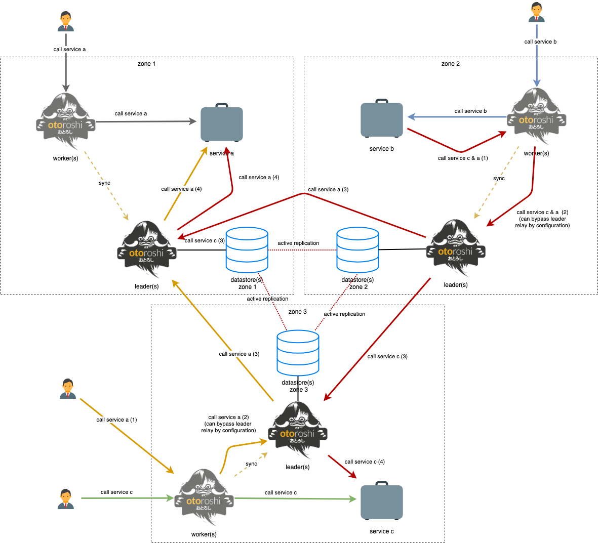 the datastores are replicated accross network zones in an active-active fashion. Each network zone also have applications, apis, etc deployed. Sometimes the same application is deployed in multiple zones, sometimes not.