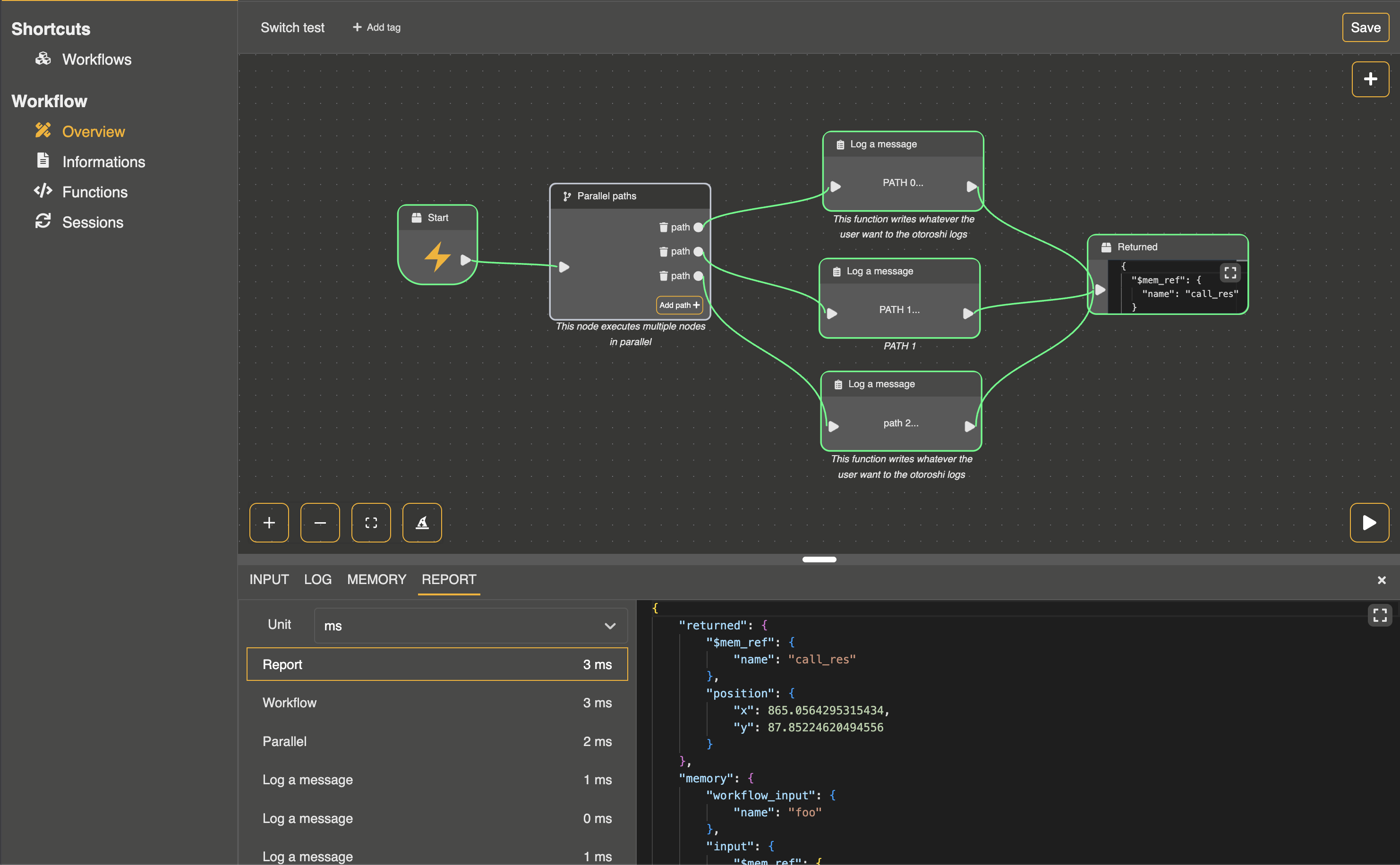 - Memory Panel: Inspect the workflow's internal memory at the current execution step.